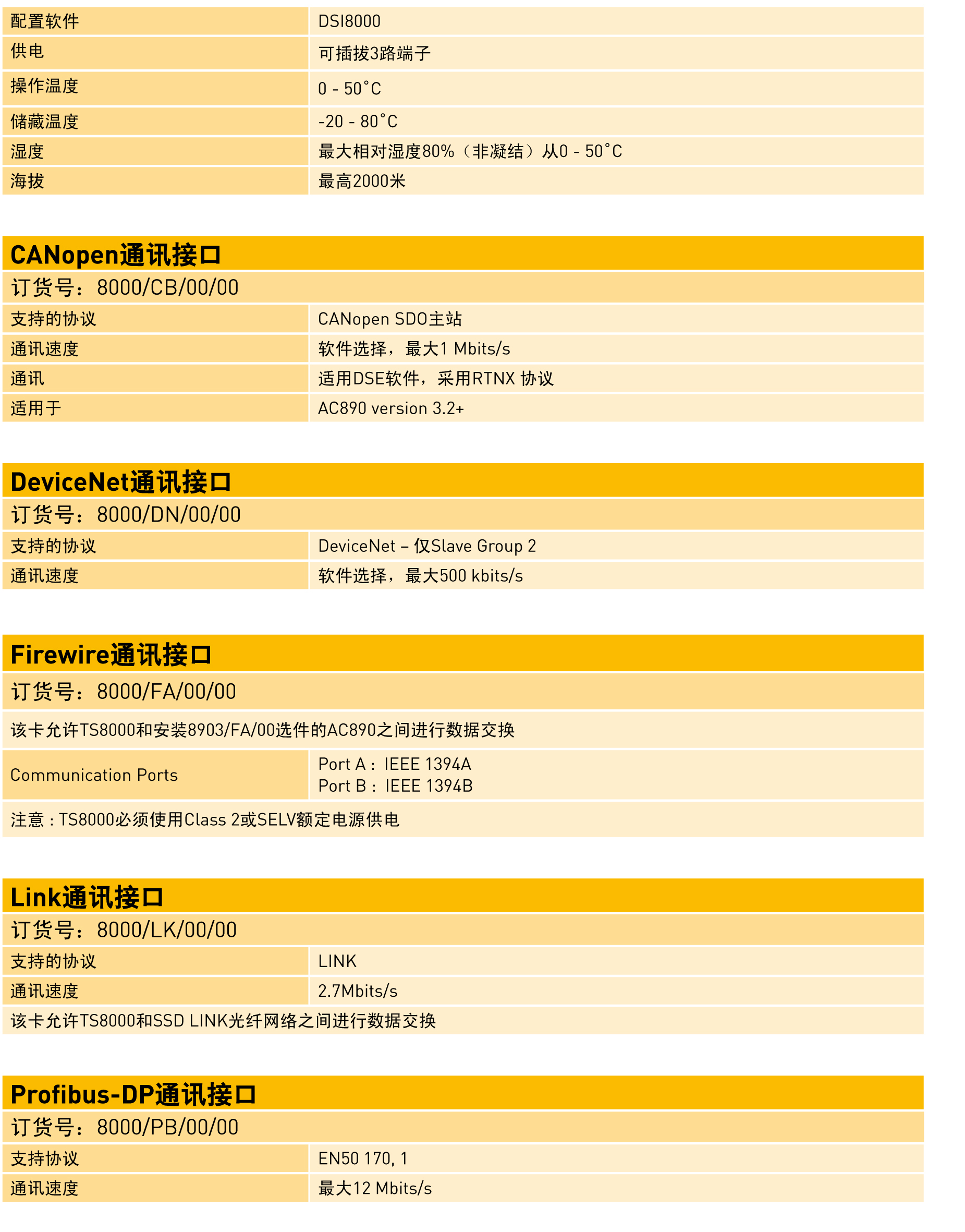 TS8000的通訊卡可將TS8000接入大多數(shù)流行的現(xiàn)場總線通訊網(wǎng)絡。